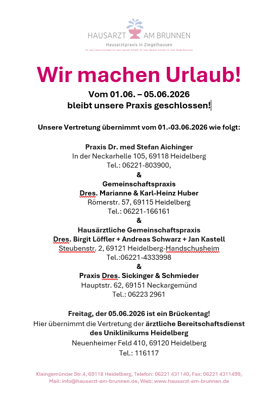 Wir machen Urlaub! Vom 01.06.-05.06.26
